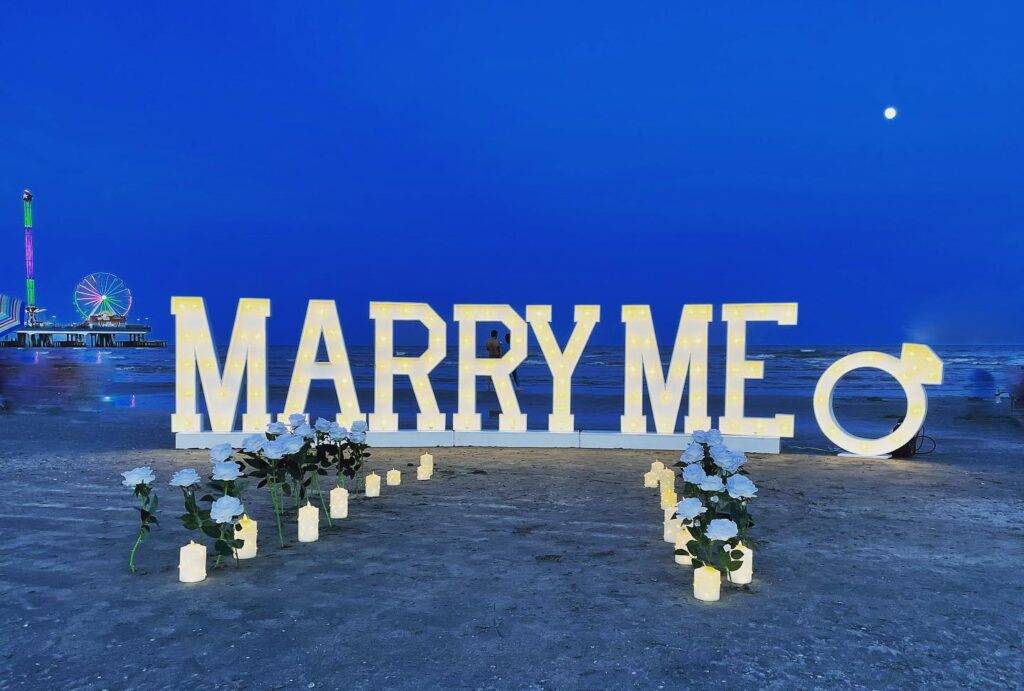 Custom marquee letter displays to create a stunning backdrop for your engagement.