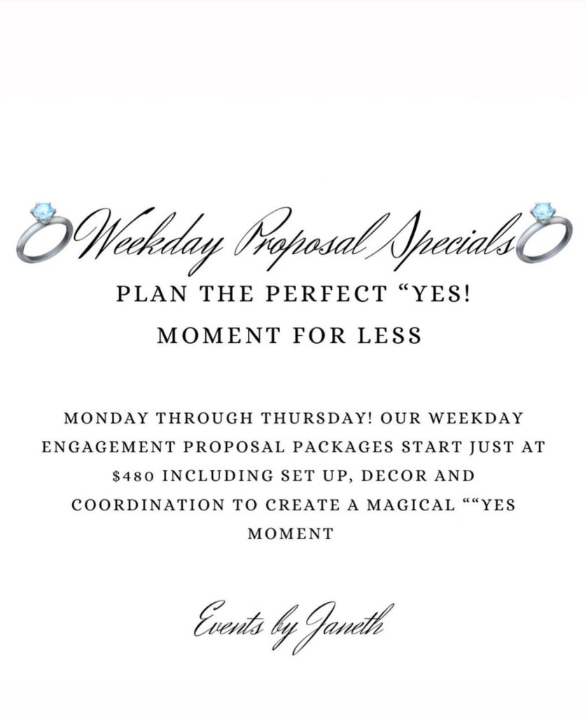 Enjoy exclusive weekday pricing on our unforgettable engagement proposal experiences.